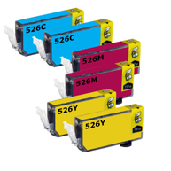 6 x kompatible Farbpatronen für Canon CLI-526 - mit Chip - je 2 x C, M, Y